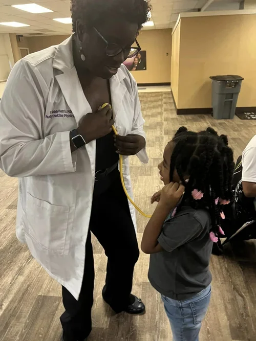 Dr Harris works with diverse community partners in the Flint area to provide health education to improve health outcomes. Social determinants of health impact every patient and Dr Harris believes caring for the community also means being involved and being a resource in the community.